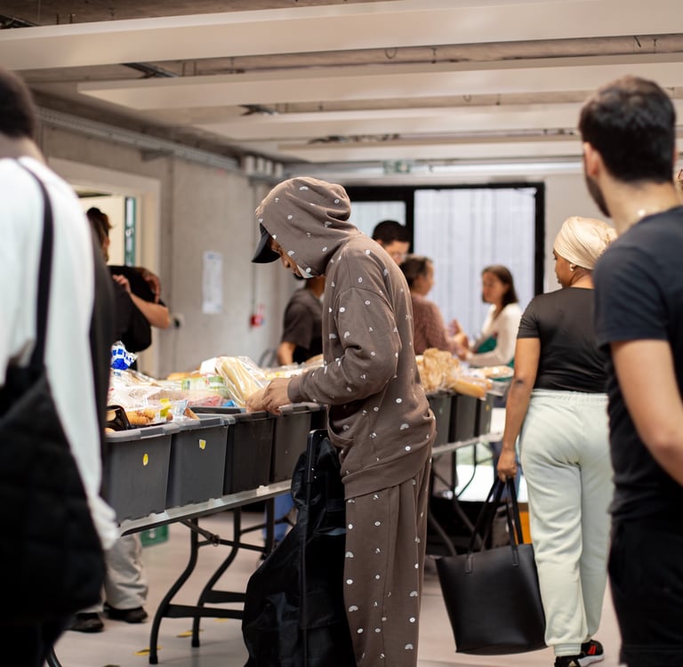 Nous récoltons les invendus de nos magasins partenaires (emballages défectueux, date de péremptions proches), puis nous les redistribuons sous forme de colis alimentaires composés aussi bien de produits frais, conserves ou encore fruits et légumes grâce à nos bénévoles.