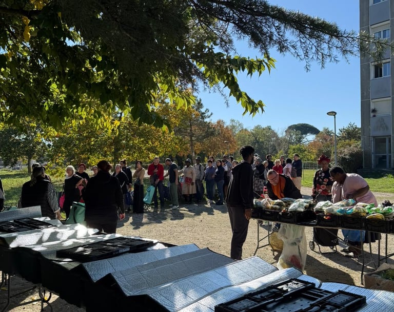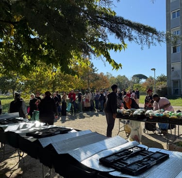 Le jeudi, la distribution a été déplacée juste en face, sur le campus de l’IRTS, permettant de maintenir l’accès aux familles du quartier tout en s’adaptant à la réorganisation de nos moyens humains et logistiques.