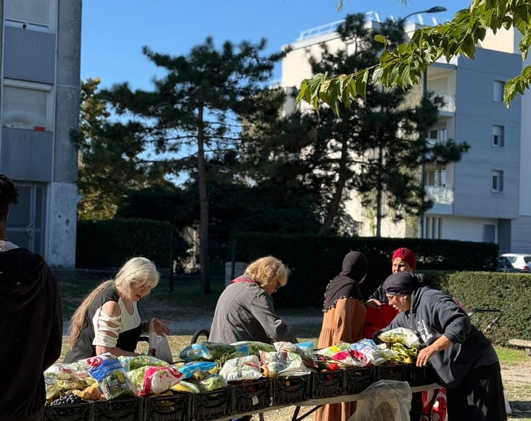 Depuis 2016, soit presque dix ans, Espoir Pour Tous est présent chaque semaine dans le quartier de Château Raba à Talence pour assurer la distribution alimentaire aux personnes et familles dans le besoin.